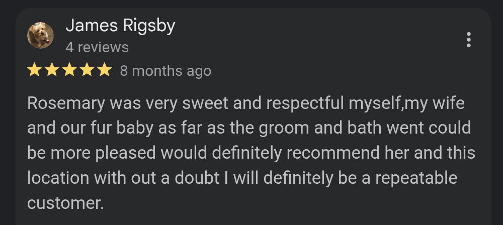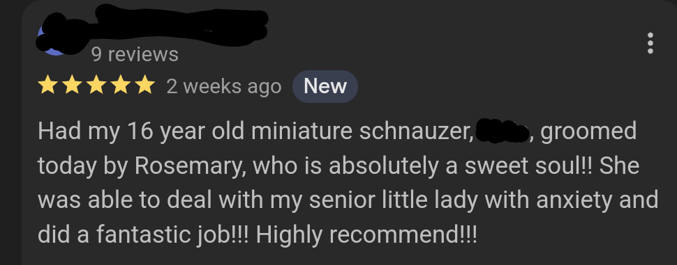 With over 3 years of professional grooming experience, I’ve had the privilege of helping countless dogs in the Asheville area look and feel their best. I started Mobile Grooming by Rosemary to offer a more personal, low stress grooming experience built around comfort, trust, and individualized care. As I grow, my vision is to bring grooming directly to clients through mobile services, making the process even easier and more convenient for both pets and their owners. Every dog is treated like my own with patience, experience, attention to detail, and a genuine commitment to their wellbeing.